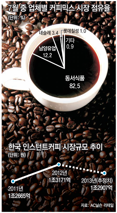 국내 인스턴트커피 시장 규모는 2010년 1조 원을 돌파하며 지난해까지 계속 성장해 왔으나 최근 정체기를 맞고 있다. 시장 조사기관인 AC닐슨 리테일은 올해 한국의 인스턴트커피 시장 규모가 지난해보다 2% 감소한 1조2907억 원이 될 것으로 예상하고 있다.