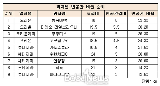 아이들 즐겨먹는 과자류 절반 '과대포장'