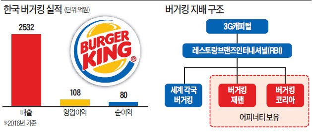 버거킹이 유독 일본에서 맥을 못 춘 것은 지배구조 때문이라는 분석도 있다. 일본 버거킹의 가맹사업권은 당초 롯데그룹 계열사인 한국 롯데리아 소유였다. 2010년 일본 롯데리아로부터 사들였다. 신동빈 롯데그룹 회장 산하 한국 롯데리아가 운영하는 버거킹이 형인 신동주 전 일본 롯데홀딩스 부회장의 일본 롯데리아와 공생하는 구도였다. 롯데그룹 지원에 힘입어 버거킹재팬 매장 수는 순식간에 35개에서 100개로 늘기도 했지만 형제간 경영권 분쟁이 불거지면서 한국 롯데리아가 버거킹을 키우기 부담스러운 상황이 됐다는 후문이다. 이 과정에서 버거킹 본사와 맺은 일본 가맹사업권도 자연스레 해지됐다.