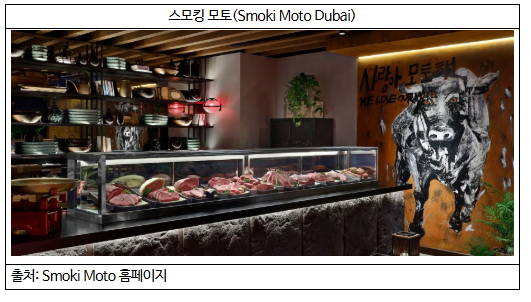 한편, 현재 한국산 한우의 UAE 수출은 공식적으로 시작되지 않았으나, 한국 내 도축장이 UAE 정부의 할랄 도축장 인증을 획득함에 따라, 향후 한식 파인다이닝 레스토랑들을 중심으로 한국산 한우 기반 프리미엄 메뉴의 런칭이 본격화될 것으로 기대된다.
