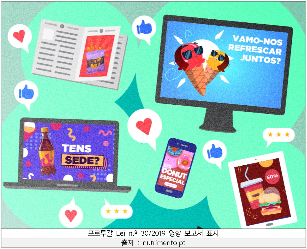 포르투갈 소비자원(Direção-Geral do Consumidor)이 WHO와 EU 기준을 기반으로 HFSS 식품을 분류하고, 법 준수 여부를 감독한다. 위반 시에는 1,750~45,000유로 벌금이 부과된다. 벨기에와 달리 강제성을 가지는 규제이나, 가족을 대상으로 한 TV 프로그램이나 스포츠 경기 등에는 적용되지 않아 실질적으로 아동이 HFSS 식품 광고로부터 보호되지 못하고 있다는 지적도 있다(Figueira et al., 2023). 포르투갈 정부에서 2024년 발간한 해당 법의 영향 평가 보고서에서는 현재 법의 적용을 받지 않는 광고물에 대해 보조적인 조치를 취할 것, 보다 효과적인 모니터링 시스템을 구축하고 5년마다 정책을 평가할 것, 그리고 적용 연령을 18세로 상향 조정할 것을 제언했다.
