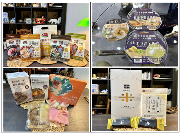 댕스푸(鄧師傅)는 전시 현장에서 “장인 정신”을 주제로 한 음식을 냉동식품을 브랜드 스토리텔링 마케팅으로 집중적으로 소개하였으며, 마위산 푸드(馬玉山食品)는 곡물 문화 체험 여행을 주제로 대만 젊은 소비자 층의 아침 및 점심 식습관에 맞춰진 라이트 토스트 곡물 제품의 패키징을 특별히 디자인하여 전시함으로써 주목을 이끌었다. 한편 러미곡장(樂米穀場)은 쌀을 이용한 파인애플 케이크와 같은 간식류 제품을 선보였는데 고급스러운 디자인의 패키징을 적용해 한층 업그레이드된 브랜드 이미지를 구축하는데 주력하는 모습이었다.