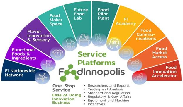 태국 정부는 방콕 북부 빠툼타니 지역에 위치한 연구 단지 사이언스 파크에 글로벌 식품 혁신 허브인 푸드 이노폴리스(Food Innopolis)를 설립했다. 해당 단지는 국가과학기술개발청(NSTDA)이 운영하고 있으며, 공공기관, 민간기업, 대학 간 협력을 통해 식품 분야 연구 개발 촉진 및 강력한 생태계 조성을 목표로 한다. 푸드 이노폴리스는 기업가들의 니즈에 맞춘 종합적인 서비스 플랫폼을 제공하며, 푸드 이노폴리스에 입주한 기업에게는 다양한 인센티브 혜택이 주어진다.