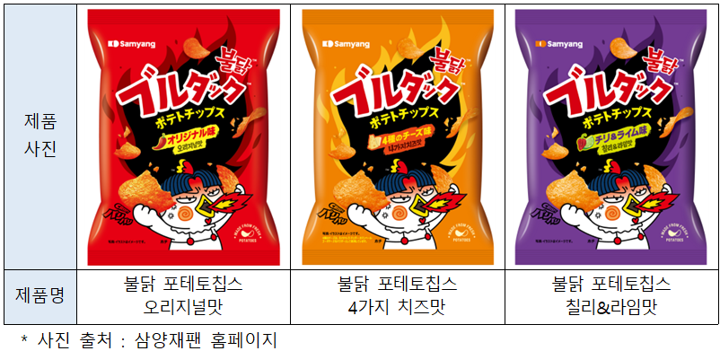 삼양재팬에서는 2024년 6월, 불닭볶음면을 스낵과자로 만든 ‘불닭 포테토칩(ブルダックポテトチップス)’을 일본 한정으로 출시했다. ‘불닭 포테토칩’은 일본 한정판이라는 점과 인바운드 관광객 수요로 출시로부터 약 1년 만에 100만개를 돌파하며 현지 소비자들 사이에서 인기를 끌고 있다. SNS 등에서 일본 소비자 뿐만 아니라 방일 외국인 관광객들 중에서 미국인 소비자들 사이에서도 반응이 좋아서 올해 4월, 미국에도 ‘불닭 포테토칩’을 출시했다.