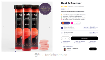 Trip만이 공격적인 마케팅을 펼치는 기업은 아니다. 건강 보조 식품 기업 Tonic Health의 창업자 Sunna van Kampen은 작년 10월, 신제품 Rest & Recover 발포정이 “시장 최고의 수면 보조제(the best sleep supplement on the market)”라고 말하는 인스타그램 릴스를 게시했다. “스트레스를 덜고, 수면의 질을 개선하고, 근육 회복을 돕는다”라고도 언급했다. 해당 제품에는 마그네슘 300mg, KSM-66 아쉬와간다(ashwagandha) 100mg, 레몬밤 추출물 500mg 등이 함유되어 있다. ASA는 이와 같은 광고 문구가 GB Register에 근거하지 않았다고 보아 시정 명령을 내렸다. Sunna van Kampen은 심의 결과 발표 이후에도 일정 기간 동안 해당 릴스를 삭제하지 않았으며, “ASA의 결정을 존중해 표현을 수정했으나, 법에 반영되지 못한 최신 연구 결과에 발을 맞추는 것도 중요하다”라고 강조했다.