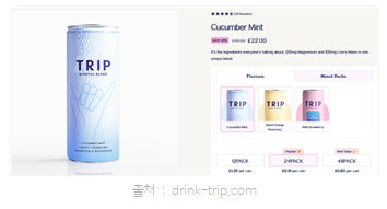 지난 7월 16일, 영국 광고 규제 당국 ASA(Advertising Standards Authority)는 기능성 음료 Trip이 광고 규정(CAP code)을 위반했다고 보고 시정 명령을 내렸다. Trip을 제조한 Trip Drink는 2019년 영국에서 만들어진 음료 회사로, 정신 안정에 도움을 주는 음료로 소셜미디어에서 인기를 끌기 시작해 현재 CBD(칸나비디올) 음료·오일·젤리, 마그네슘 음료·파우더·젤리 등으로 제품군을 확장했다.