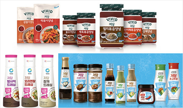 굳건하던 양강 구도는 이달 CJ제일제당이 저당 소스 전문 브랜드 '슈가라이트' 9종을 대대적으로 출시하며 격변을 예고했다. CJ제일제당의 참전이 위협적인 이유는 '백설'과 '해찬들'이라는 막강한 브랜드를 기반으로 드레싱, 굴소스, 양념장, 고추장, 쌈장 등 한국인의 식생활에 필수적인 제품군을 모두 갖췄기 때문이다.