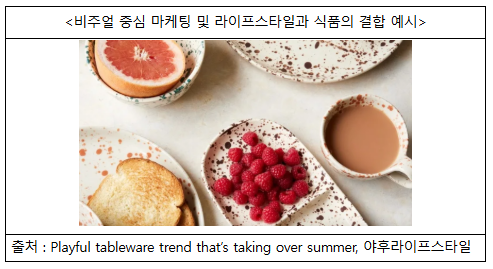 - 식품 패키징·테이블웨어·공간 마케팅과 결합해 먹는 경험+보여주는 경험’을 동시에 제공하는 전략 필요