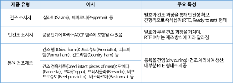 - 이번 HACCP 모델은 비가열·상온 저장 가능 제품 범주에 적용됨. 이 범주의 제품들은 열처리가 아닌 발효, 염장, 건조 공정을 통해