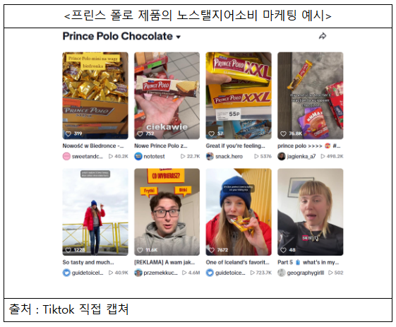 폴란드의 경우는 전통 간식의 재해석이 인기 주제이다. ‘Prince Polo‘라는 초코 웨이퍼 바는 전통적인 제품이지만, 최근 Z세대의 ‘노스탤지어(Nowstalgia)’ 소비와 결합하며 다시 인기를 끌고 있다. 이는 과거 간식+새로운 비주얼 마케팅이 젊은층에게 소구할 수 있음을 보여주는 사례로 볼 수 있다.