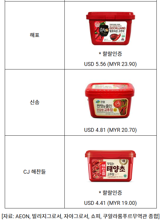 한류 열풍과 내식 수요 증가 속 말레이시아 고추장 시장 성장세