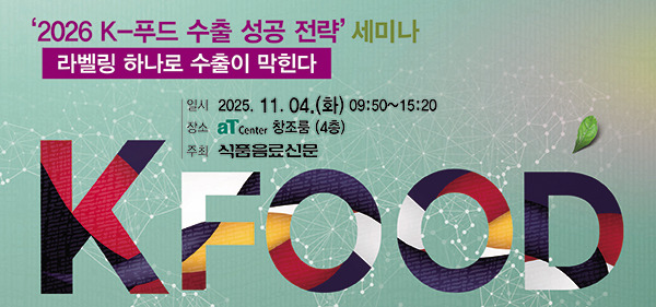 식품음료신문은 오는 11월 4일(화) 오전 9시50분부터 aT센터 창조룸에서 ‘2026 K-푸드 수출 성공 전략’을 세미나를 개최한다. 특히 “라벨링 하나로 수출이 막힌다”를 주제로 열리는 이번 세미나는 라벨링·포장 기준이나 서류 준비 등 기본 요건을 제대로 파악하지 못해 어렵게 개척한 수출길이 다시 막히는 경우가 빈번히 발생하고 있어, 이로 인한 수출 리스크를 사전에 점검하고 대응해 우리 기업이 안정적으로 수출 기반을 마련할 수 있도록 실무에서 적용가능한 전략과 대응 방안을 함께 제시한다.