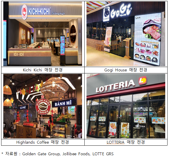 ◦ Jollibee Foods Corporation — 베트남 내 Jollibee 매장 약 200곳과 커피 프랜차이즈 Highlands Coffee를 함께 보유.