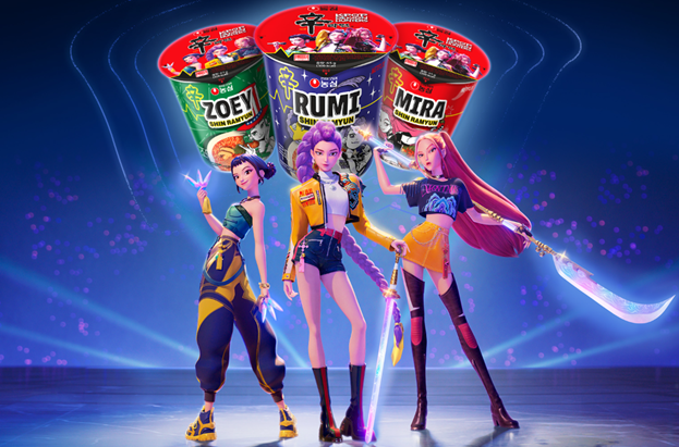 K-콘텐츠 역시 한국 라면의 글로벌 인지도 확산에 중요한 역할을 하고 있다. 최근 넷플릭스에서 1위를 기록한 애니메이션 ‘케이팝 데몬 헌터스(K-POP Demon Hunters)’에 등장한 세 주인공이 한국 컵라면을 먹는 장면이 공개되면서, 미국 내 컵라면에 대한 관심이 크게 높아졌다. 극 중 농심 신라면을 연상시키는 패키지 디자인이 노출되자, 농심은 넷플릭스와 협업해 신라면 포장지에 케이팝 데몬 헌터스 캐릭터를 적용한 신라면과 새우깡을 출시하였으며, 조만간 미국 시장에도 선보일 예정이다.