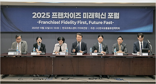 한국유통물류정책학회 주관 22일 한국프레스센터에서 열린 ‘2025 프랜차이즈 미래혁신 포럼’에서 각계 전문가들은 프랜차이즈 산업이 직면한 도전 속에서 지속가능한 혁신을 이루기 위해서는 과거의 성과를 재조명하고 현재의 변화 양상을 진단하며 미래의 발전 방향을 모색해야 한다고 힘주어 말했다.