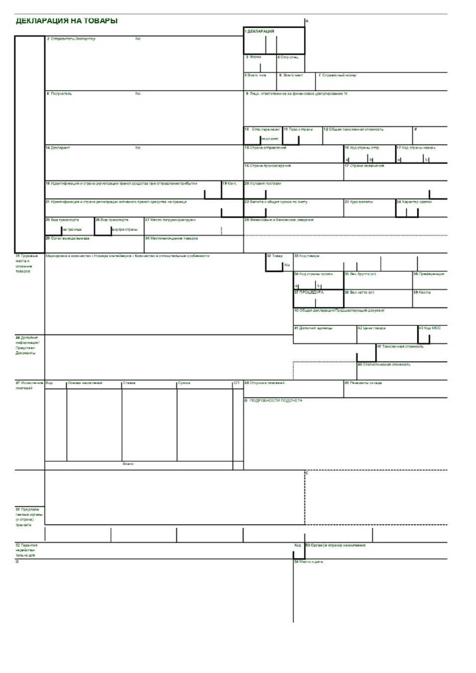 물품 신고서는 유라시아경제연합(EAEU) 영토로 상품을 수입하거나 수출할 때 작성되는 문서로, 신고서에는 화물 운송 단위에 포함된 물품 정보가 모두 기재된다.