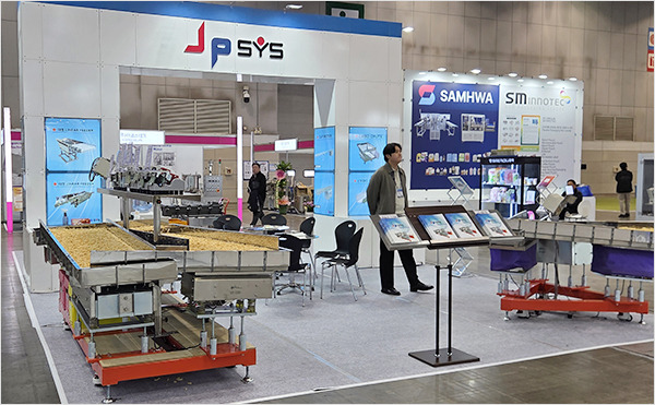 이러한 자동화 라인이 원활하게 작동하기 위한 핵심 부품 및 연관 기술 기업들도 눈에 띄었다. ‘피더(Feeder)’ 시스템 전문 기업인 (주)제이피시스(JP SYS)는 다년간의 수출 경험으로 다져진 내구성과 품질을 선보였다. 이 회사는 ‘보울 피더(BOWL FEEDER)’를 통해 음료나 화장품의 캡(뚜껑), 플라스틱 성형품 등 작은 부품들을 일정한 방향으로 자동 정렬해 공급하는 기술을 시연했다. 또 ‘리니어 피더(LINEAR FEEDER)’ 를 통해 정렬된 부품을 ‘크래커 이송용’ 라인 등으로 정확하게 직선 이송하는 기술과 ‘분체 피더(Powder Feeder)’ 등 핵심 부품 공급 솔루션을 함께 제시했다.