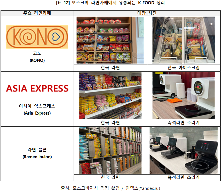 또한 라면카페와 온라인 유통채널을 통한 K-FOOD의 유통 경로가 확대되고 있는 점 등을 미루어볼 때 러시아 내 K-FOOD의 시장 잠재력은 여전히 유효하다고 할 수 있다.