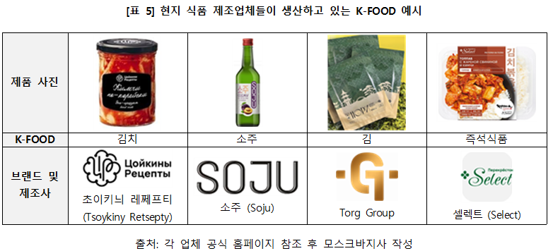 그러나 높아진 K-FOOD의 위상이 증명하듯 점차 더 많은 러시아인들이 정통 K-FOOD의 맛에 익숙해짐에 따라, 정통 K-FOOD 레시피에 따른 한국 본연의 맛을 구현하려는 현지 식품 제조업체들이 점차 늘어나고 있는 추세다.