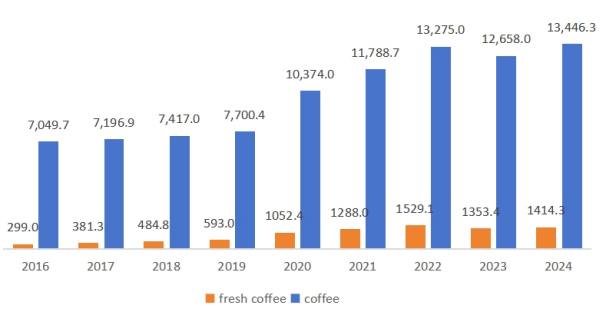 영국 알레그라그룹(Allegra Group) 산하 시장조사업체 월드커피포털(World Coffee Portal)의 보고서에 따르면, 지난 2023년 중국은 세계에서 커피 매장이 가장 많은 국가로 부상했다. 2025년 9월 기준 중국의 카페 매장 수는 전년 동기 대비 20% 증가한 26만 개로 집계됐다.