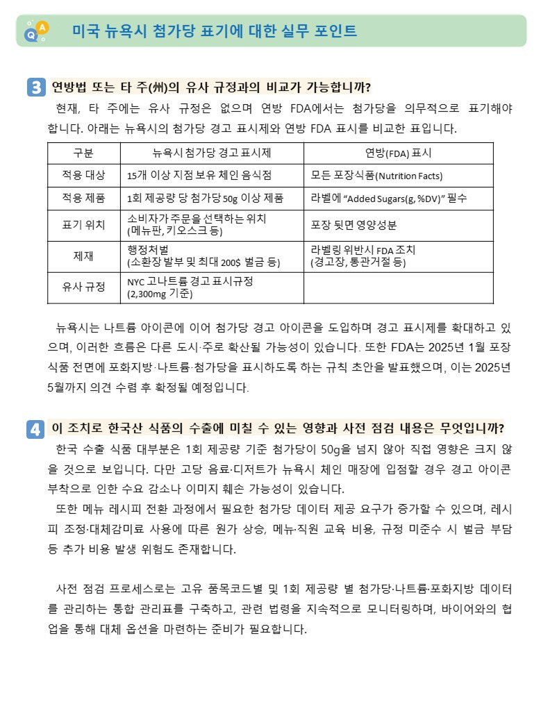 [전문가자문] 미국, 뉴욕시 미국 최초로 첨가당 경고 표시제 시행