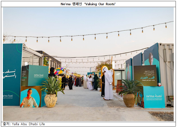 2022년에 출범한 국가 식품 손실 및 폐기 이니셔티브(National Food Loss and Waste Initiative, Ne’ma)는 UAE가 FLW 문제를 국가 전략 수준으로 다루기 시작했다는 점에서 매우 중요한 전환점이다. 이 이니셔티브는 기후변화환경부(MOCCAE), 민간기업, NGO, 지역사회가 함께 참여하는 국가 단위 협력 이니셔티브이며, 2030년까지 FLW를 절반으로 감축하는 것을 목표로 한다.
