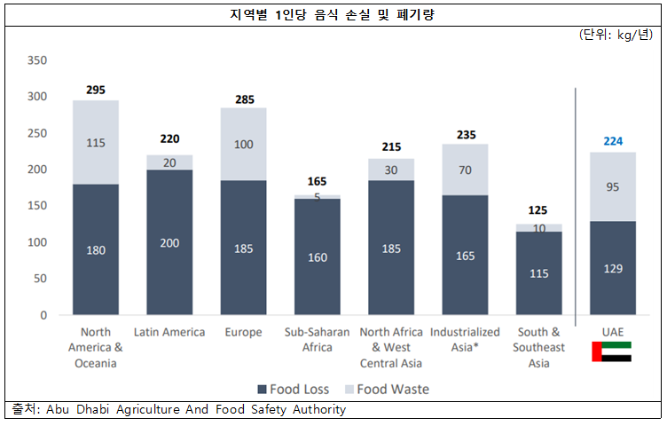 그러나 UAE는 여전히 심각한 식품 손실 및 폐기(Food Loss and Waste, FLW) 문제에 직면해 있다. 공식 통계 기준 UAE는 매년 약 327만 톤의 음식이 폐기되며, 이는 경제적 부담과 환경적 비용을 동시에 증가시키는 주요 요인으로 지적된다.