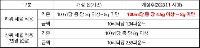 2. 설탕세 과세기준 및 적용 대상 확대