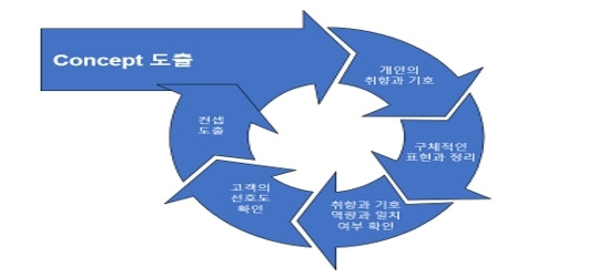 컨셉을 만들어가는 과정은 아래의 과정을 거친다고 하겠다.