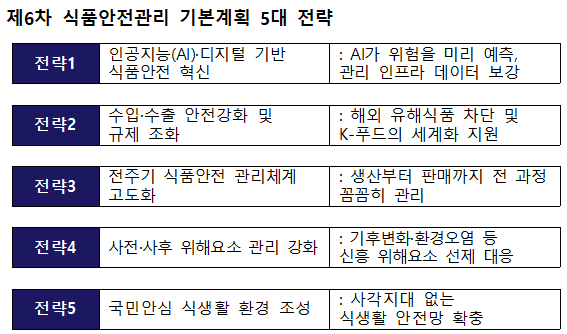 우리나라의 향후 5년간(‘26∼‘30) 식품안전 정책 방향을 담은 ‘제6차 식품안전관리 기본계획’이 마련됐다.