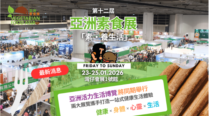 아시아 최대 규모의 채식 박람회인 “Asia Vegetarian Expo 2026”가 1월 23일부터 1월 25일까지 홍콩 컨벤션 전시 센터(HKCEC)에서 개최되었다. 이번 엑스포의 메인 주제는 채식 생활과 건강한 생활을 컨셉으로 웰빙 제품, 채식 제품, 천연 성분의 개인 위생용품, 친환경 생활용품, 그리고 기타 저탄소 라이프 스타일 솔루션을 소개하였다. 박람회에는 즉석식품, 채식 딤섬, 저칼로리 스낵, 식물성 음료, 소스, 건강보조식품 등을 포함해 많은 채식 및 친환경 관련 제품들이 전시됐다.