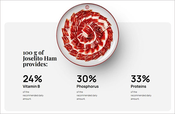 스페인 전통 브랜드 호셀리토(Joselito)는 자사 웹사이트에서 자사 햄 100g이 비타민B 하루 권장량의 24%, 인의 30%, 단백질의 33%를 제공한다고 설명한다. 실제로 젊은 소비자들은 다른 세대에 비해 식료품 구매 시 제품의 비타민 및 미네랄 함량에 가장 큰 관심을 보인다.