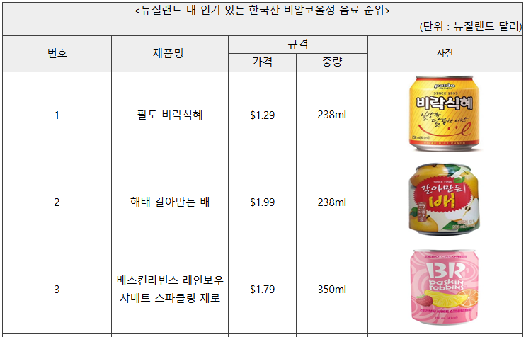 ▶ 뉴질랜드 내 한국 비알코올성 음료 수입 동향 및 유통 채널