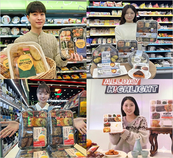 세븐일레븐은 연휴 기간 집에서 휴식하는 고객들을 위해 든든한 한 끼를 책임질 ‘기운한상 도시락’(6900원)을 선뵀다. 쫀득한 알떡스테이크와 소불고기를 중심으로 모둠전, 잡채, 각종 나물 등 총 11가지 반찬으로 구성해 명절 상차림의 구색을 완벽히 갖췄다. 명절 기간 공단 지역과 독신 상권을 중심으로 도시락 매출이 오르는 트렌드를 반영한 제품이다.