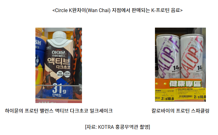 홍콩에서는 피트니스, 체형 관리, 웰니스에 대한 관심이 높아지면서 단백질 보충 제품에 대한 수요가 빠르게 증가하고 있다. 이러한 배경 속에서 한국산 단백질 음료인 K-프로틴 제품들은 ‘고단백·저당·유당 프리’와 같은 기능성을 내세우며 기존 K-푸드 이미지에서 한 단계 확장된 건강 지향형 카테고리로 자리 잡고 있다.