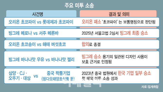 식품업계에서 미투 제품은 어제오늘 일이 아니다. 파이류, 아이스크림, 라면, 스낵, 음료, 껌에 이르기까지 ‘성공 공식의 복제’는 이미 업계의 관행처럼 굳어졌다. 일부 미투 제품은 법적 문제로 불거졌지만, 법원은 대부분 원고의 주장을 기각했다.