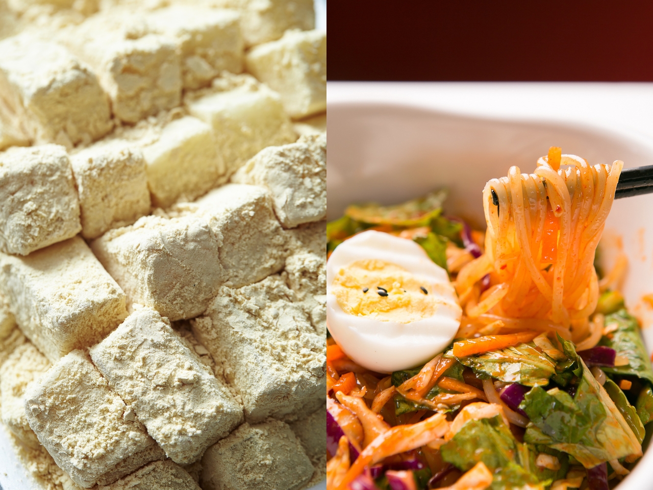 한식은 다양한 메뉴에서 서로 다른 형태의 쫄깃한 식감을 가지고 있다. 사진은 인절미와 쫄면 [게티이미지뱅크]