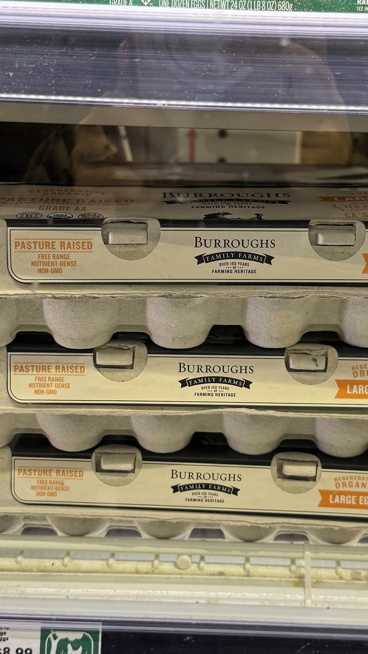 반면, 이전에 보지 못한 새로운 유기농 달걀 브랜드들이 새롭게 입고되었다. 코뉴코피아에서 1620점을 획득하고 코뉴코피아 스코어카드 등급 중 최상위 등급인 5등급을 유지한 버로우스 패밀리 팜 달걀도 소비자들의 선택을 받고 있었다. 이제 미국 소비자들은 더 이상 ‘방목’이나 ‘유기농’이라는 라벨만을 신뢰하기보다는 사육 환경은 물론이고 닭이 실제로 어떤 사료를 먹고 자랐는지까지 살펴보는 단계로 이동하고 있는 것을 보여주는 장면이었다.