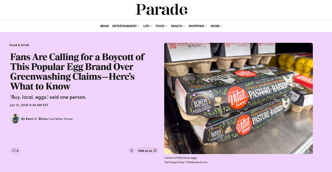 논란은 1월 중순 한 인플루언서가 SNS에 올린 영상이 공개되며 본격적으로 불거졌다. 해당 영상은 업로드 일주일 만에 수백만 조회수를 기록하며 소셜미디어에서 빠르게 확산되었고, 이후 Parade, The Kitchn, Men’s journal 등 라이프스타일 및 웰니스 매체들이 관련 기사를 연이어 보도하며 이슈가 확대됐다. 일부 소비자들은 보이콧을 외치며 분노를 표출했고, 바이탈 팜스의 주가(VITL)는 1월 20일 하루 만에 6% 급락하는 등 시장에 즉각적인 영향을 미쳤다. 유기농 방목형이라는 라벨은 더 이상 건강의 보증 수표가 될 수 없다는 사실이 밝혀지면서, 프리미엄 식품 시장은 혼란에 빠지게 된 것이다.
