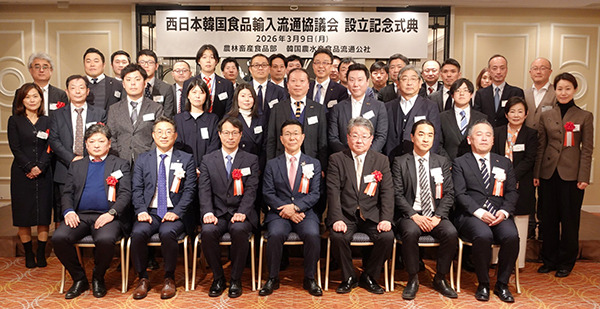 농림축산식품부(장관 송미령)와 한국농수산식품유통공사(aT)는 한국산 농식품의 대일 수출 활성화를 위해 ‘서일본 한국식품 수입유통협의회’를 설립하고 9일 오사카에서 창립 기념식을 개최했다고 밝혔다.