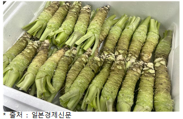 <시사점> 최근 일식 붐과 관광객 증가 등으로 인해 와사비 수요가 증가하고 있으나, 늘어나는 수요에 비해 공급이 따라가지 못한 상황이다. 특히 와사비는 수확까지 시간이 많이 걸리고 재배 난이도 또한 높아 생산량을 바로 늘리기 쉽지 않은 품목이다. 생산량 증가 또는 일식 붐 종속에 따른 수요 증가세 완화 등 특별한 계기가 없는 한 본와사비의 가격은 향후 증가 추세를 이어갈 것으로 보인다.