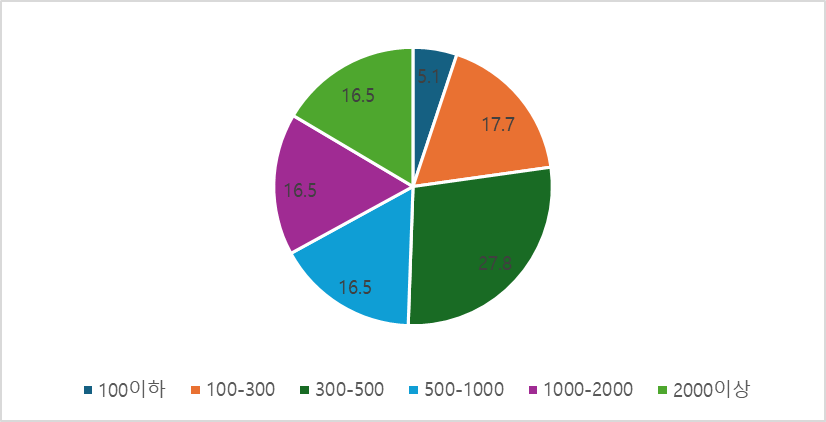 <2025년 중국 편의점 연간 매출액 분포>