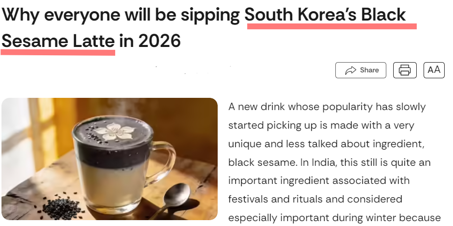 식음료 업계 한 관계자는 “글로벌 시장에서 아시아 식재료의 부상과 K-카페의 인기는 국내 카페에서 볼 수 있는 흑임자 라테까지 주목하게 했다”고 전했다.