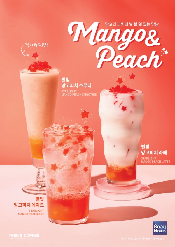 이번 신메뉴는 망고와 복숭아의 달콤한 조합에 별 모양의 나타드코코를 더해 쫀득한 식감은 물론, 음료 위에 별빛이 내려앉은 듯한 화사한 비주얼까지 완성한 점이 특징이다.