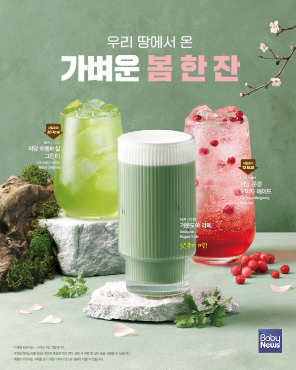 이번에 선보인 제품은 △거문도쑥 라떼 △저당 문경오미자 에이드 △저당 하동매실 그린티 등 3종이다. '거문도쑥 라떼'는 해풍을 맞고 자란 거문도산 쑥을 활용해 쌉쌀한 풍미를 살리고 부드러운 크림을 더해 고소하고 달콤한 맛의 조화를 구현했다. '저당 문경오미자 에이드'는 문경오미자의 상큼한 풍미와 화사한 색감을 담은 저당 에이드로, 봄 시즌에 어울리는 청량감을 강조한 것이 특징이다. '저당 하동매실 그린티'는 하동매실의 상큼한 풍미와 깔끔한 맛을 조화롭게 담아 가볍게 즐길 수 있는 리프레싱 티 음료다.