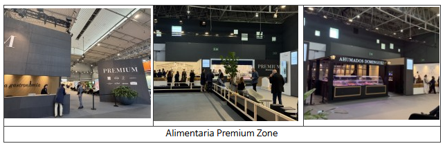 ☞ Alimentaria에서는 Premium Zone을 별도 구성하여 이베리코 하몽, 푸아그라, 해산물 가공품, 치즈 등 프리미엄 식재료 중심 전시