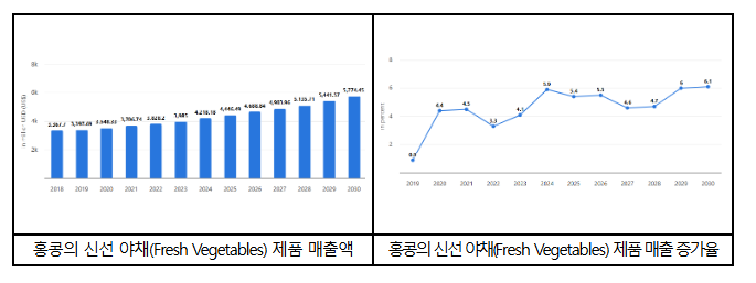 - 스태티스타(Statista) 유료 정보 조사기관 정보 (Market Insight > Fresh Vegetables Hong Kong, China)