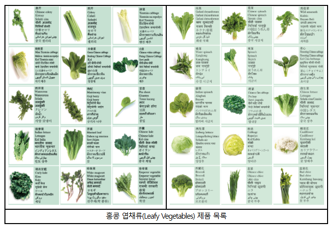 - 홍콩식물환경위생서(Food and Enviromental Hygiene Department)에서 정의하는 Leafy Vegetable 구분