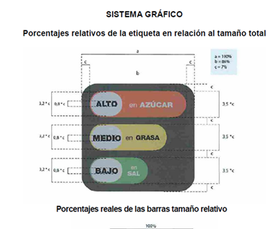 2014년에 도입된 이 라벨링 시스템은 대부분의 중남미 국가가 많이 활용하고 있으며, 모든 가공식품과 음료에 적용되며 스낵, 라면, 알코올음료를 포함한 대부분의 제품군이 해당된다. 소비자에게 제품의 설탕, 지방, 소금 함량을 시각적으로 쉽게 이해할 수 있도록 해 건강에 유익한 선택을 하는 것을 목표로 하며, 식품 제조업체들이 제품의 영양 성분을 재조정하도록 유도하는 역할도 한다. 건강에 해로운 요소(당류, 지방, 나트륨)의 수량 경고를 녹색, 노란색, 적색의 신호등 색으로 표시한다. 고함량인 경우 빨간색, 평균 함량인 경우 노란색, 저함량인 경우 녹색으로 표기한다.