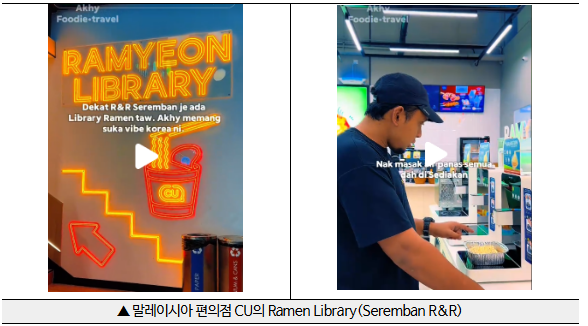 ❍ 말레이시아 편의점 CU의 라면 라이브러리(Ramen Library)에서는 다양한 브랜드 라면을 편리한 조리기를 통해 즉석에서 즐길 수